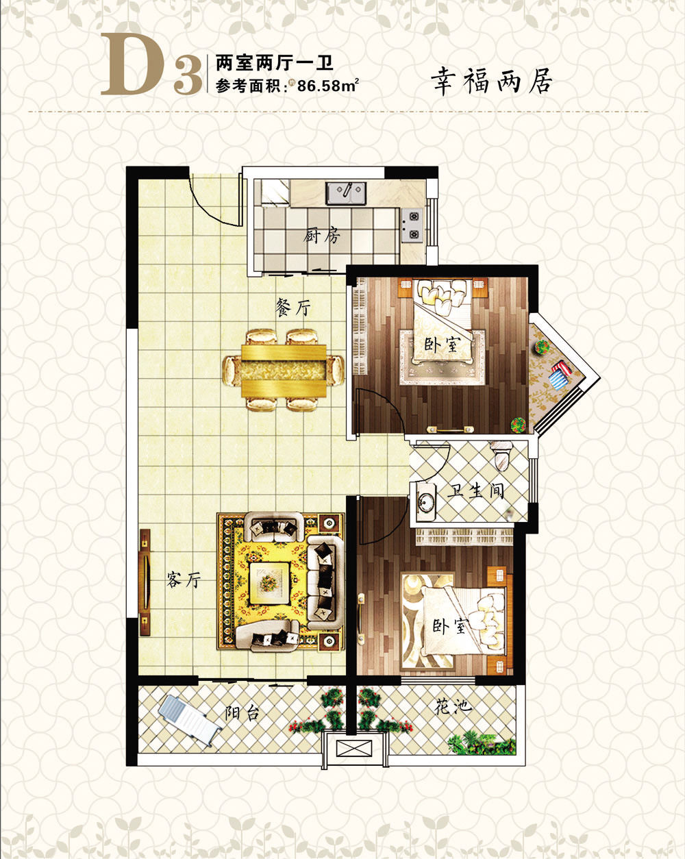 祥云春晓两室两厅一卫86.52平米