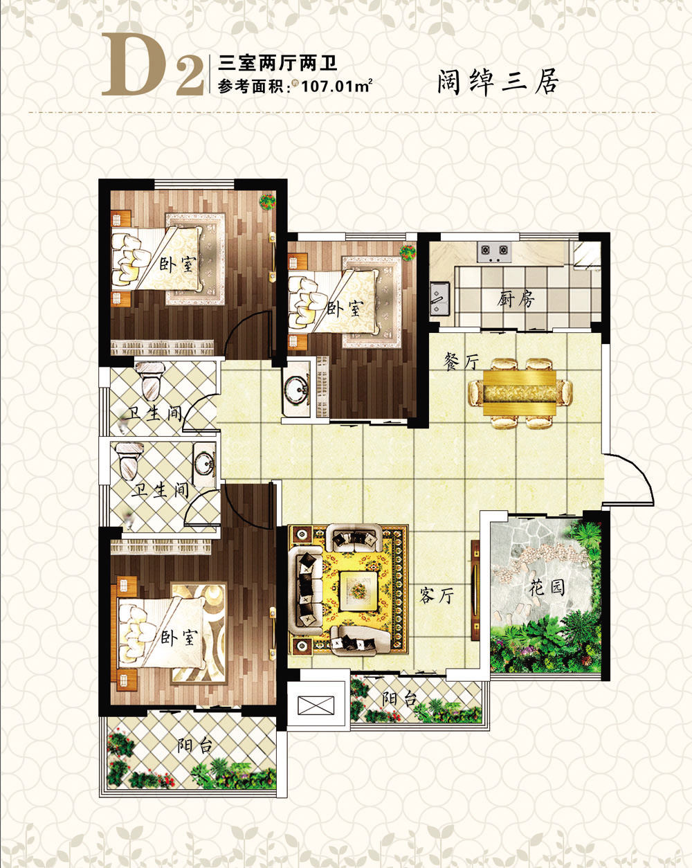 祥瑞东方城三室两厅两卫107.01平米